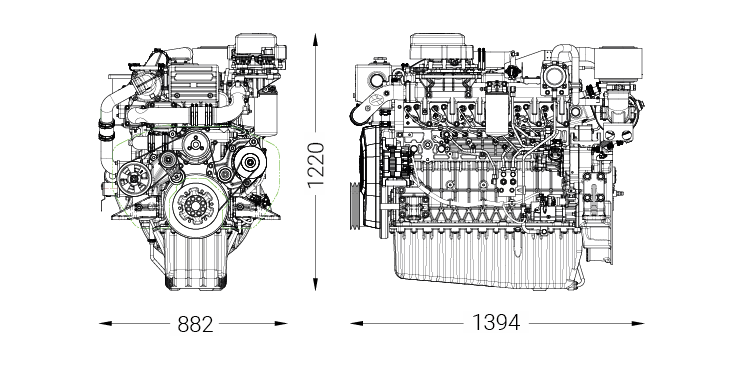 Diesel de aplicación interna Motores en línea entre 160 y 545 hp y motores en V entre 480 y 1200 hp. Motores Marinos Electrónicos entre 130 y 1235 ps.